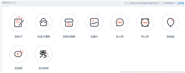 三、在知道这些之后,我们再来看下该如何具体的发布微淘呢?